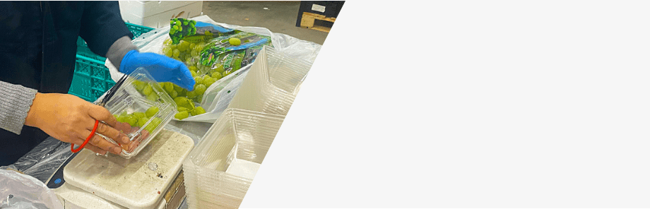 各量販店などから各納品先に送られてくる発注を基に、お客様からお預かりしている商品から傷や腐れなどが無いか専門スタッフが選別作業を行います